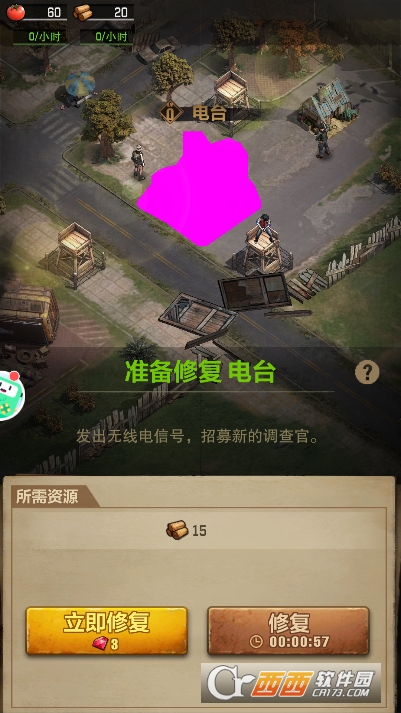 末日建设与资源管理:玩家需重建 “希望镇” 基地,优先升级议事厅(决定建筑上限)、医院(治疗伤兵)等核心建筑,同时收集食物、木材、子弹等资源,其中子弹需击败 19 级僵尸解锁开采,保障兵种训练与战斗消耗。