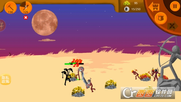 王国大战3手游免广告版是一款以火柴人为主题的策略经营类游戏,玩家将扮演火柴王国指挥官,通过训练矿工采矿获取资源,建造士兵,弓箭手,长矛兵,魔法师等特殊战斗职业,进攻敌方的大本营,通过摧毁地方雕像获得胜利,并且每次获胜都会概率解锁更多职业,投入技能点数,强化你的部队。
