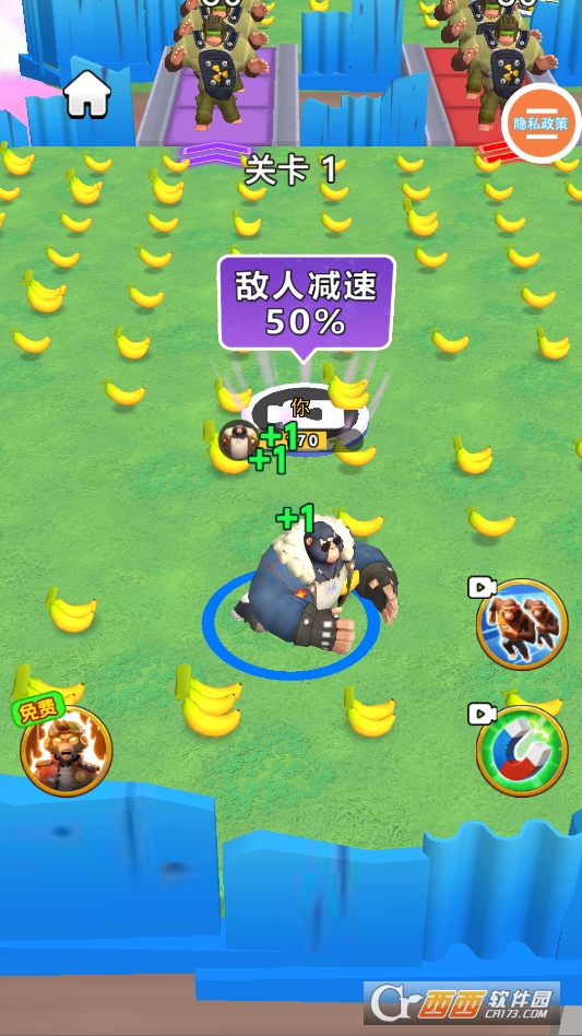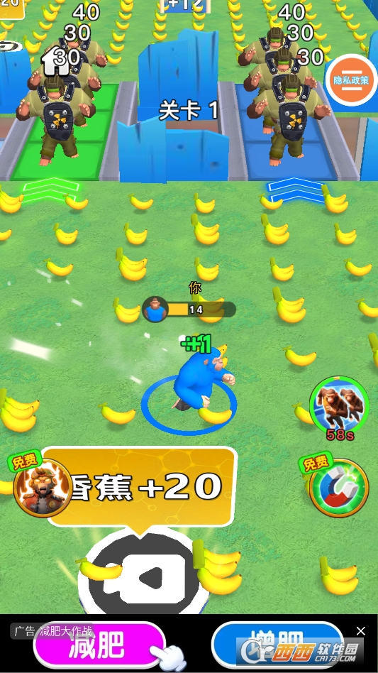 猴子版的进化养成跑酷游戏,核心是吞噬成长、族群管理,主打“玩法杂、节奏爽、有盼头”。游戏安装包不大,千元机也能流畅运行,加载速度特别快。操作特别好上手,虚拟摇杆控制猴子移动,点击屏幕就能触发吞噬和攻击。跑酷过程中避开障碍、吃掉香蕉,遇到敌人自动锁定,新手跟着引导玩两局就熟练了。