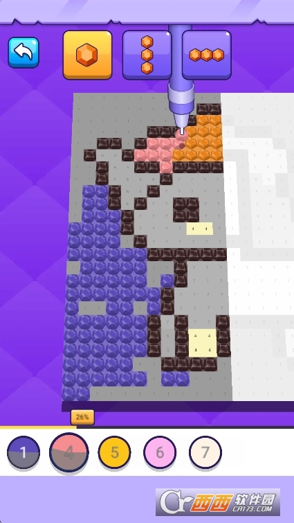 点击画布上的数字区域,选择对应颜色的"钻石"