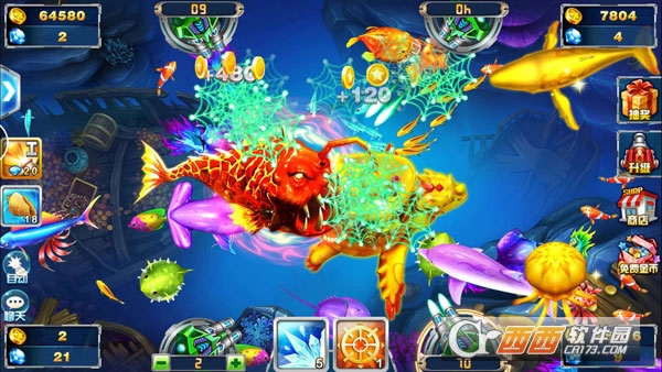 3、道具妙用:游戏内提供“锁定”、“冰冻”、“狂暴”等多种功能道具。在关键时刻使用,例如用“锁定”追击残血BOSS,或用“狂暴”清理密集鱼群,能起到事半功倍的效果。