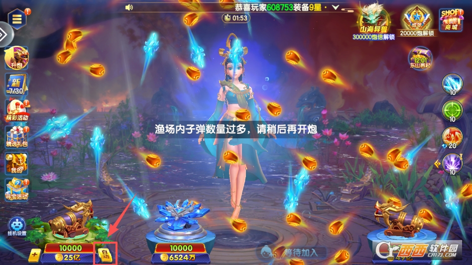 进入游戏的渔场之中,点击你的自己的炮台右侧的自动按钮
