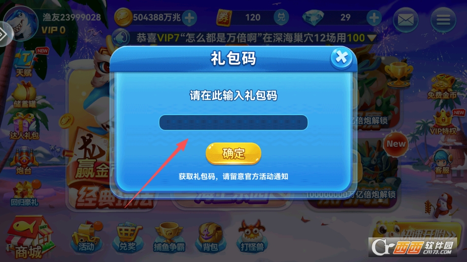 波克捕鱼怎么兑换礼品码