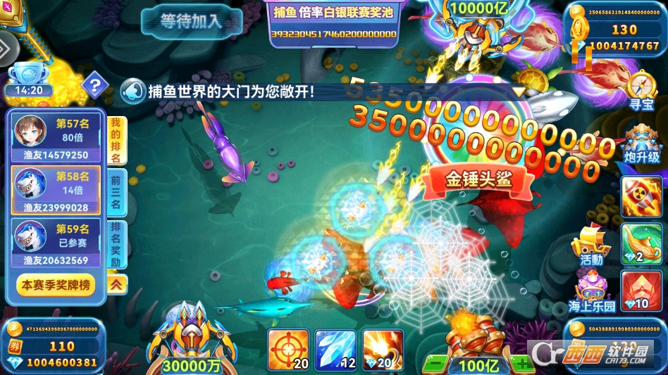 3.赛事竞技模式:每天都会开启多场捕鱼赛事,玩家消耗少量金币报名参赛。比赛按捕鱼得分排名,排名靠前的玩家能获得海量元宝和专属炮台奖励。赛事节奏快,竞技性强,适合有一定经验的玩家。