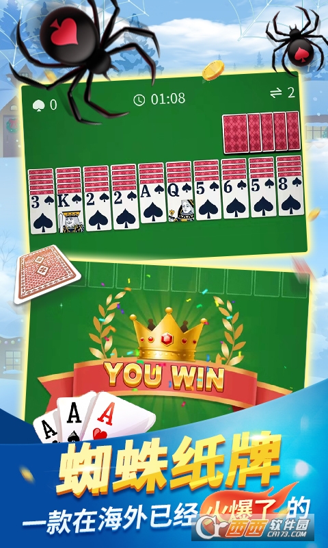 经典蜘蛛纸牌手机版绝对是家喻户晓的益智游戏,从电脑时代火到手机端,承载了几代人的回忆。它不像别的游戏花里胡哨,就是纯粹的蜘蛛纸牌玩法,全家老小都能凑在一起玩。