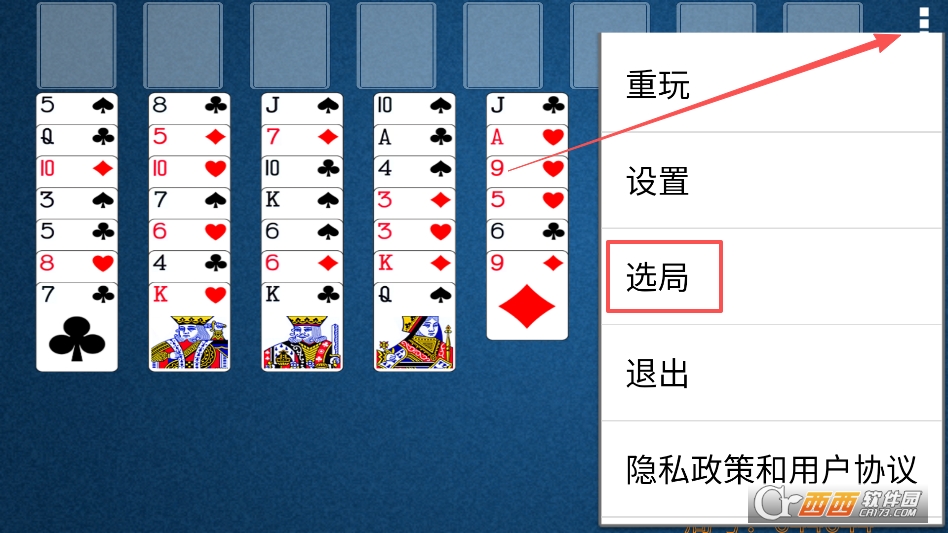 答:移牌要遵循红黑相间、从大到小的规则,比如黑桃8可以放在红桃9下面,反之也一样。