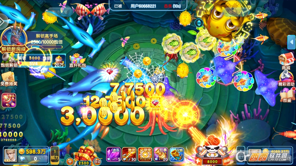 游戏里有很多实用道具和技能,比如捕获三叉戟特殊鱼后。可以在渔场里来回穿梭击杀鱼群,搭配狂暴技能持续输出,轻松拿下BOSS。合理使用道具能让金币收益翻倍。
