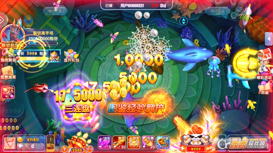 玩法特别丰富,除了经典捕鱼,还有各种特色关卡和竞技模式。多人联机对战的时候,和队友协作集火BOSS,互动感十足。就算一个人玩,单机模式也能玩得很尽兴。