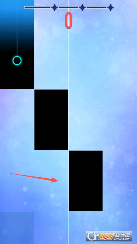 这是一个玩法十分经典的下落式音游,游戏目标就是不断连续点击下落的黑块