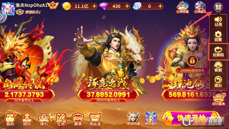进入游戏主界面点击右上角按钮呼出菜单,点击兑换码选项