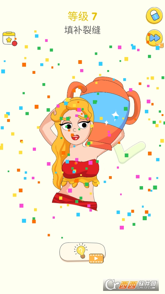 核心玩法特别好懂,就是用橡皮擦擦出图片下隐藏的答案。进入关卡后,屏幕上会有一层遮挡画面。用手指滑动模拟擦除动作,就能慢慢看到下面的真相。