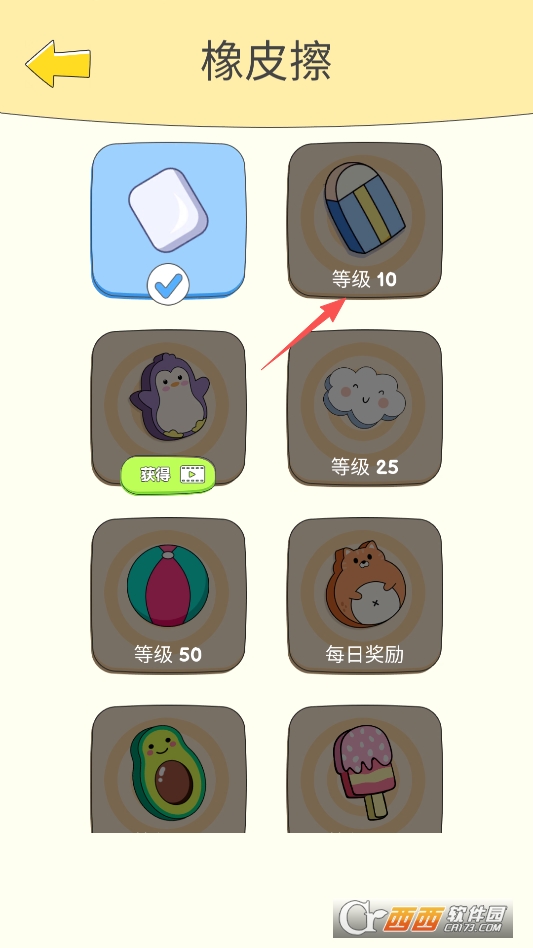 即可切换不同的橡皮擦皮肤
