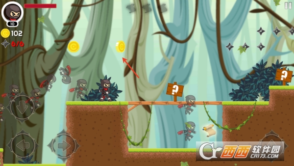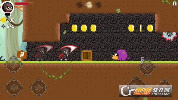 忍者大冒险手游安卓版是一款横版动作闯关类型的休闲游戏,玩家将扮演最强忍者,找回被抓走的公主。通过跳跃,下蹲,冲刺等方式拾取金币与卷轴道具,还能获取专属武器手里剑,利用投掷与攻击击败沿途的魔物,获取金币,还需要一点小小的解谜,击败关底boss即可通关。
