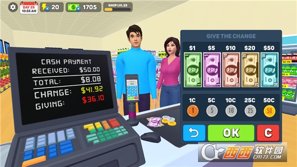 全流程经营操作:从商品采购到销售服务全链条参与,需通过游戏内电脑下单采购麦片、面包等商品,到货后完成上架陈列,同时处理收银结算(含现金 / 信用卡收款、准确找零),还要定期清理空箱子等细节操作,还原真实超市运营流程。
