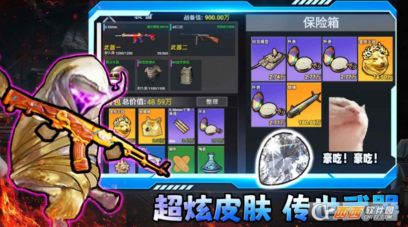 萌系反差美学与角色定制:以网红柴犬为原型设计主角,修勾手持加特林、火箭筒等重型武器,搭配毛绒特效与 Q 版爆炸云,缓解战斗紧张感;提供超 200 种饰品和皮肤,全部通过战斗解锁,无氪金数值压制,支持自由搭配打造独特角色形象。