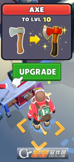 4、有了足够的资源后,我们可以去升级自己的工具,例如斧头,可以帮助你去扫除更多障碍。