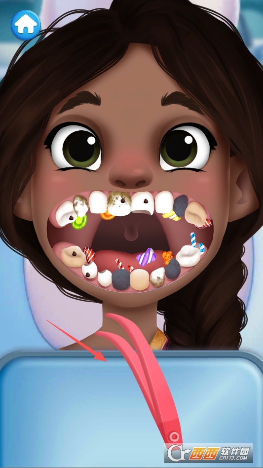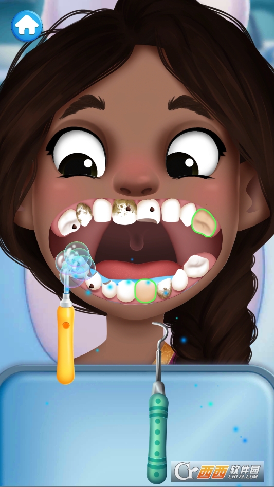 玩家可以使用丰富的牙医工具完成诊疗工作,从基础的牙刷、牙线,到专业的补牙器、拔牙钳,每款工具都还原了真实牙医的使用场景,操作简单又充满趣味。完成诊疗后看到病人露出灿烂的笑容,能让孩子收获满满的成就感。