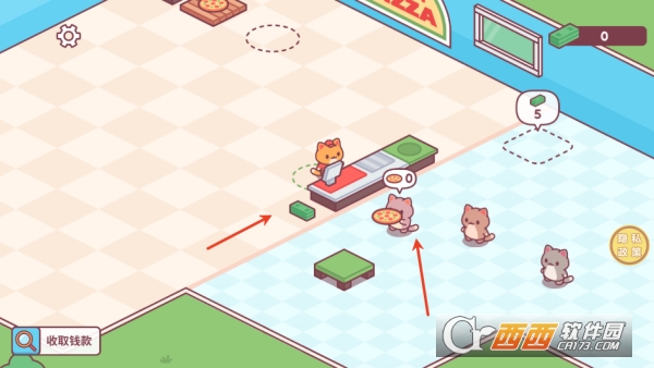 猫咪披萨店游戏免费版是一款轻松休闲的经营模拟类游戏,玩家将化身猫咪店长,经营着一家独特的披萨店,通过购买烤炉,收银台,桌椅板凳,开始一天的营业。将披萨端到收银台,按照小猫顾客的要求进行收银,拾取垃圾,赚取钱币,升级你的店铺设施 ,提高效率与容量,不断添置新设备,帮助你更好地营业。