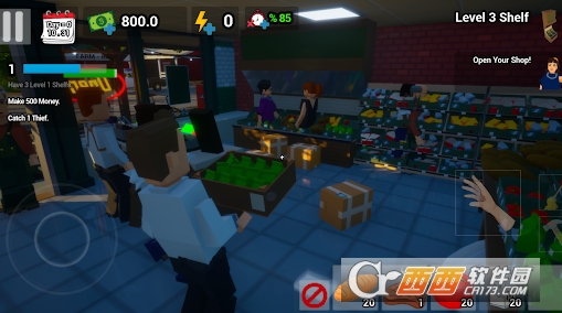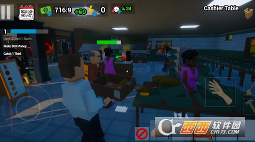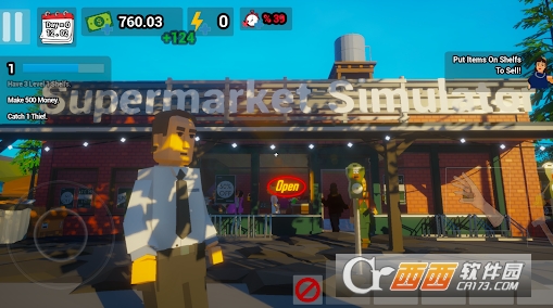 沉浸式视觉与操作体验:采用3D建模 + 像素风格结合的画面,既保留复古氛围,又通过立体场景提升代入感,搭配 Q 版卡通角色和轻松背景音乐;操作逻辑贴近现实,如商品需按区域分类摆放、使用条形码扫描收银、用拖把清洁地面等,让玩家真切体验超市经理与收银员的双重角色。