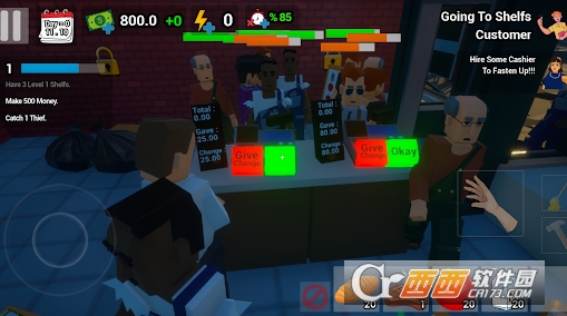 员工雇佣与管理技巧:初期需亲自完成 25 次收银以解锁雇佣权限,首次雇佣建议仅招 1-2 名收银员,避免人力成本过高;后续根据超市规模扩招清洁工、保安,定期培训员工提升效率,并合理分配任务,防止资源浪费,提升整体运营流畅度。