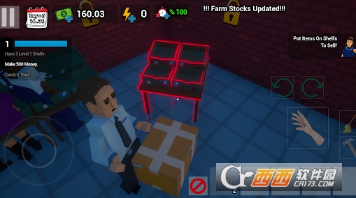库存与特殊场景应对:定期通过电脑检查库存,优先补充热销商品,同时利用工具轮快速切换 crate、平板、棒球棍等工具;遇到盗窃事件时,及时用棒球棍处理;设置生鲜区时,需先购买体重秤、生鲜架和生鲜许可证,且顾客使用体重秤时,需输入商品包装袋上的代码生成贴纸,确保操作正确。