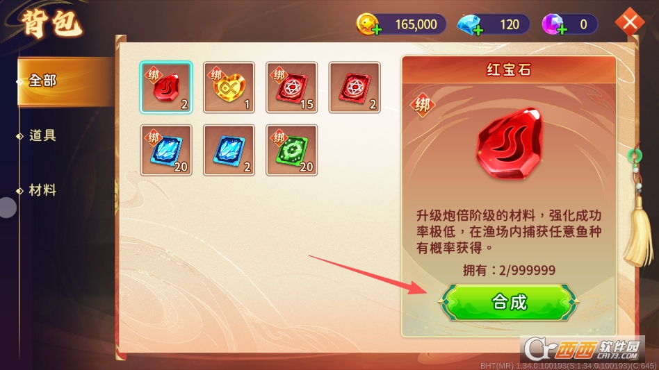 进入背包系统后,即可找到想要合成的道具,点击合成即可