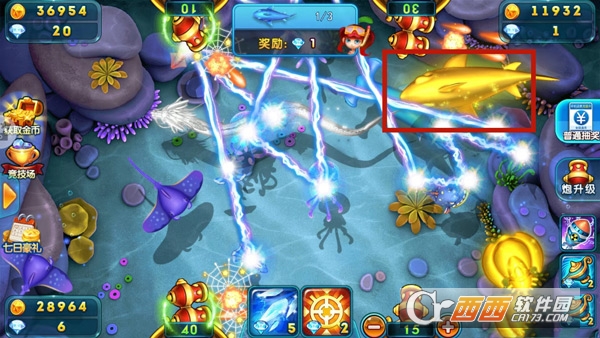 幸运铃铛:随机出现在鱼群中,触发全屏奖励