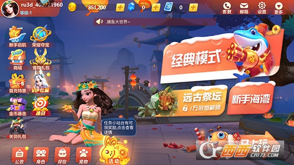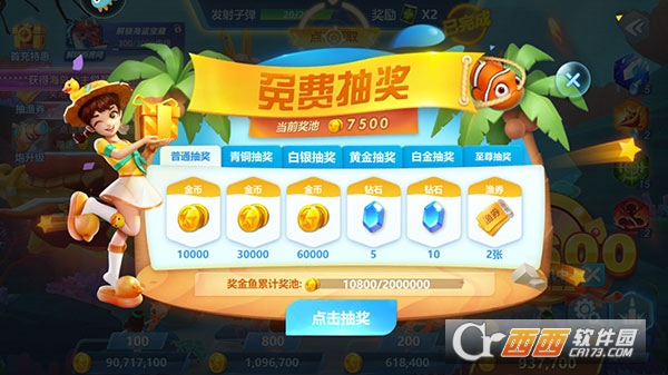 4. 特色角色与宠物系统,增添个性与助力。可选择海岛公主、热血青年等多种角色,每个角色都有专属外观和技能加成。还能解锁宠物跟随捕鱼,宠物能提升捕获概率、增加金币收益,让捕鱼过程更轻松。