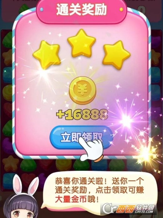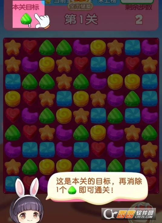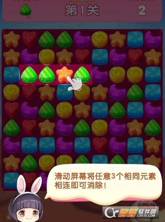 5、移动一格,把任意3个一模一样的东西连到一块儿,就能消除了