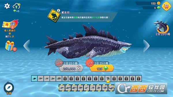 6、获得的奖励你可以用来解锁各种类型的鲨鱼;