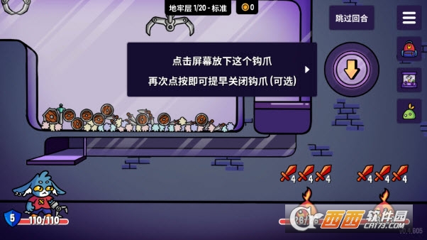 《抓抓地牢》是一款打破传统闯关模式的创新肉鸽类闯关手游,以独特的抓娃娃核心机制重构地牢探险体验,带来新鲜感十足的闯关乐趣。游戏设有 20 层随机生成的地牢关卡,从基础标准难度逐步解锁高阶挑战,玩家无需依赖走位或技能释放,而是通过操控钩爪精准抓取武器、盾牌、卡牌等道具,以此搭建专属战斗体系,击败沿途敌人推进闯关进程。