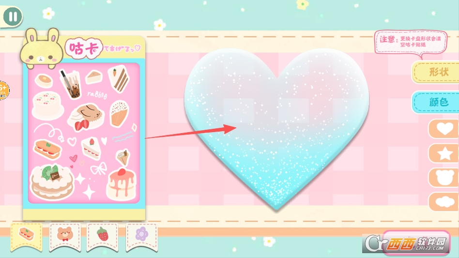 进入关卡后可以将左侧咕卡列表中的贴纸贴到右侧模板上