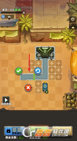 策略防御与道路构建:在剑与魔法的奇幻战场中,需先点击并在合适区域放置道路,再拖动武器到道路两侧搭建防御塔,同时可延长道路阻挡敌人靠近基地,通过抵御5波普通敌人完成闯关,战斗中防御塔会自动攻击敌人。
