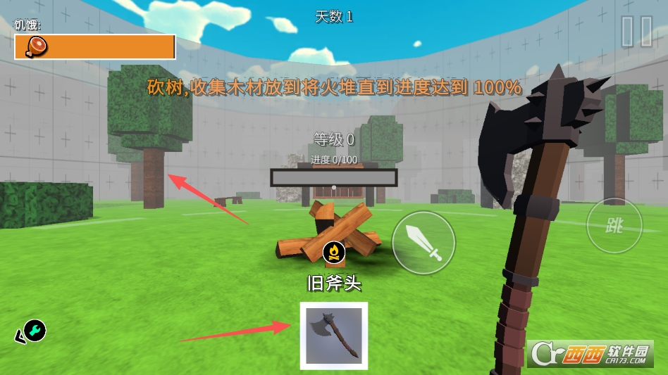进入游戏中,我们需要收集各种材料,先可以去用手中的斧头去砍树