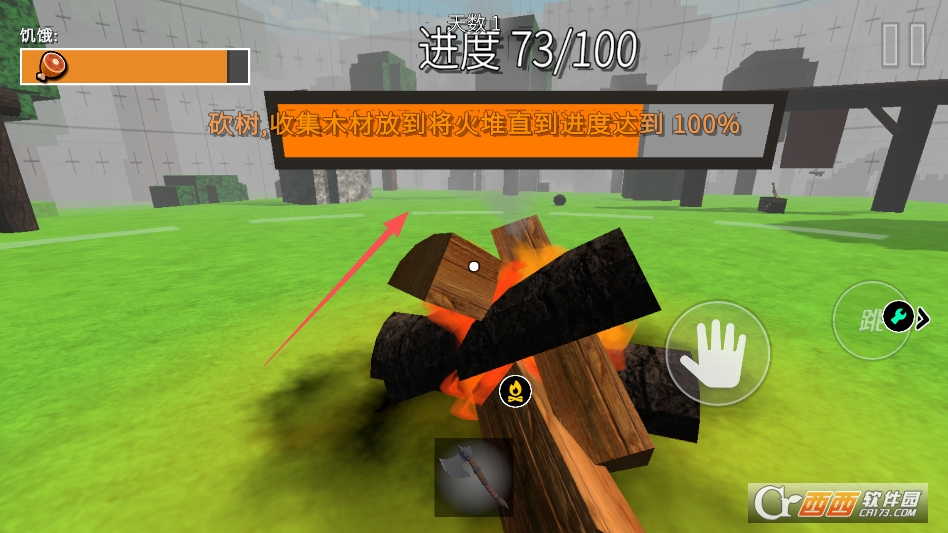 或者木材之后,就可以跟着提示去到篝火处添火来保证安全了