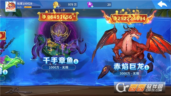 4、熔岩龙龟及其他BOSS:这里的主要特色是“福禄抽奖”。击败黄金鱼或BOSS可以累积奖励,存入福禄存钱罐,当达到满额后可参与抽奖,瓜分奖池的海量金币,奖池分为四档,奖励丰厚且刺激。