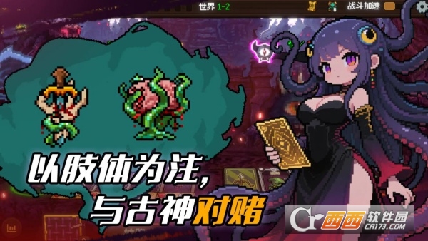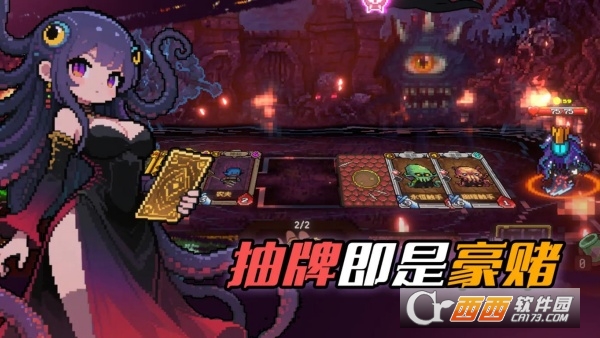 克苏鲁主题沉浸体验:以“与古神对赌”为核心设定,角色牺牲肢体(手 / 眼睛 / 思想)时外观会显著变化,事件文字叙述生动,搭配像素风格画面,营造出神秘且压抑的深渊氛围,同时卡牌封印古神生物与神秘力量,强化主题契合度。