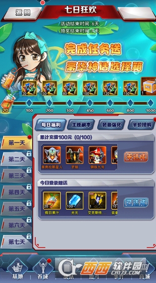 1、七日狂欢,完成任务赠送豪华神话选择箱子