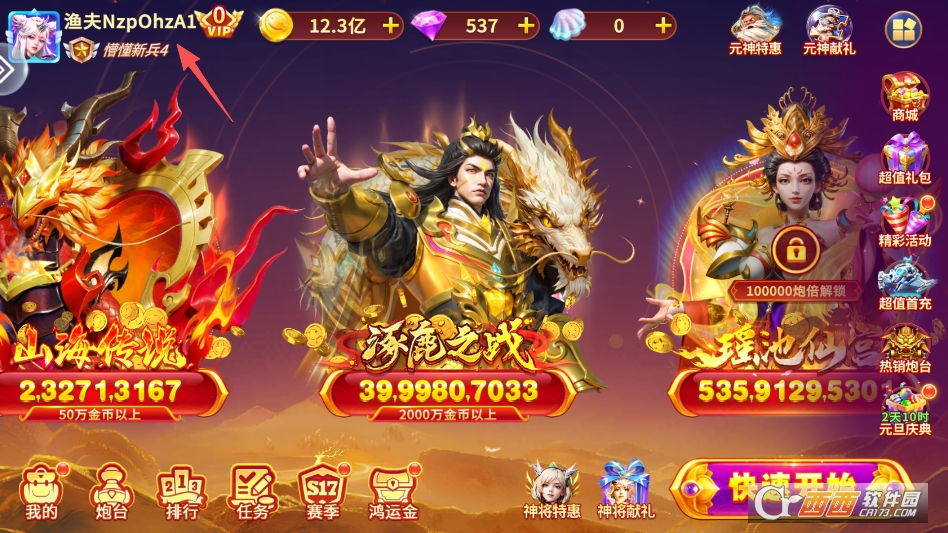 大富豪捕鱼的界面设计简洁直观,充满海洋风情,功能分区清晰明了,就算是第一次接触捕鱼游戏的新手也能快速上手。首页清晰划分了竞技场入口、福利中心、炮台升级、背包等核心功能区,常用的开炮、锁定等操作按钮布局合理,点击屏幕就能精准瞄准鱼群,学习成本极低。