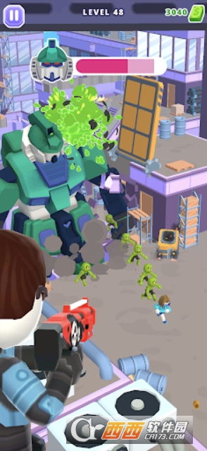 沉浸式场景与怪物设计:采用 3D 超高清卡通画风,屋顶关卡与高塔关卡轮流出现(高塔关卡需隔窗户击敌);拥有 80 种独特外星怪物,每种怪物攻击方式、弱点不同,且多数头目怪物会携带 “小黄人” 帮手,战斗难度递增。