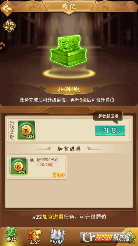 4、爵位具有加官进爵的任务,完成加官进爵的所有任务后,可以升级爵位,同时领取升级奖励
