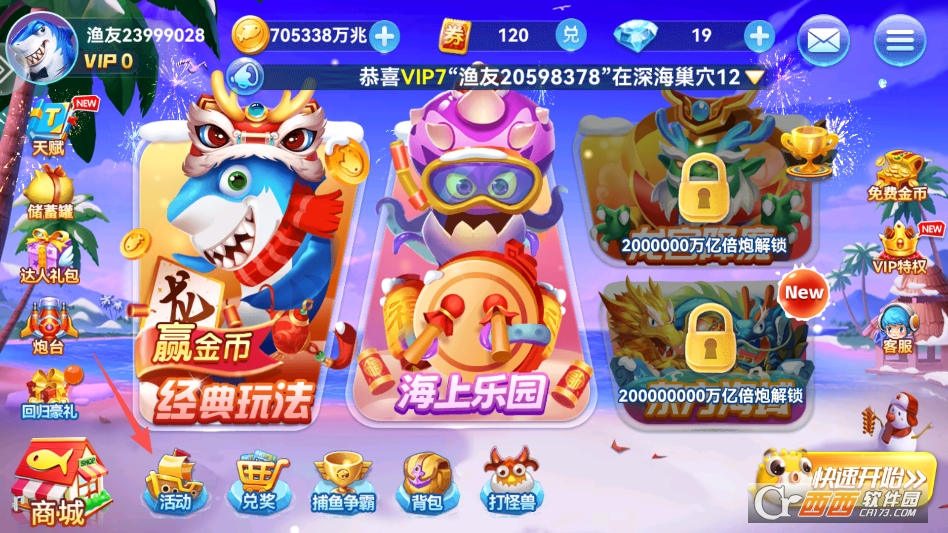 最喜欢的就是捕获稀有鱼类的瞬间,不仅有炫酷的特效,还能拿到大量金币,成就感满满。新手福利很丰厚,初始金币足够支撑初期游玩,不用一开始就充值。日常任务和活动也很多,能稳定获得金币奖励,零氪玩家也能玩得很顺畅。