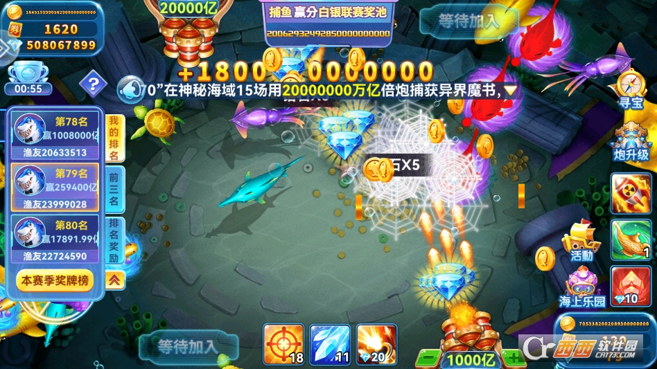 多人联机竞技模式深受玩家喜爱。支持四人实时同屏捕鱼,玩家可以邀请好友一同加入游戏,共聚同一张渔桌展开竞技比拼。在规定时间内,捕获鱼类获得的总收益越高,排名就越靠前,排名靠前的玩家能获得额外的竞技奖励和排名荣誉,互动乐趣十足。