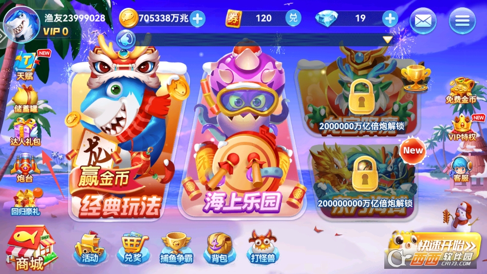 1. 新手初期优先积累资源。刚进入游戏时,金币和炮台等级都较低,建议使用10-20倍的低倍炮台,专注捕捉游速慢的送分鱼,比如乌龟、比目鱼等。这类鱼捕获成功率高,能快速积累金币和升级材料,避免盲目使用高倍炮台攻击大鱼导致资源浪费。
