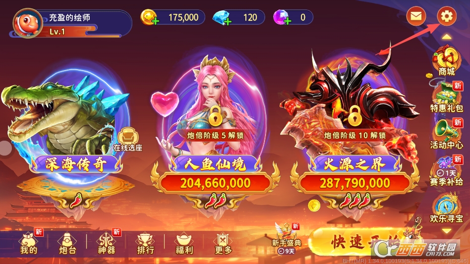 “渔房+炮台”的策略组合玩法独具特色。五大渔房对应不同的鱼类分布和难度等级,玩家需根据自身实力选择合适的渔房;万倍炮台可自由调节倍率,搭配不同的技能道具,能打造出专属的捕鱼策略。这种策略组合让捕鱼不再是简单的盲目射击,更具趣味性和挑战性。