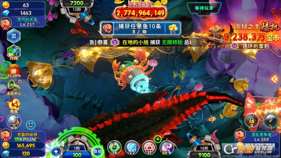 万倍炮台威力震撼。游戏内炮台支持1到万倍倍率自由调节,高阶炮台不仅威力十足,还能解锁炫酷的攻击特效。万倍炮台一击就能覆盖大范围鱼群,搭配冰冻弹、追踪弹等技能,轻松捕获稀有鱼类和深海BOSS,满屏爆金的快感让人欲罢不能。