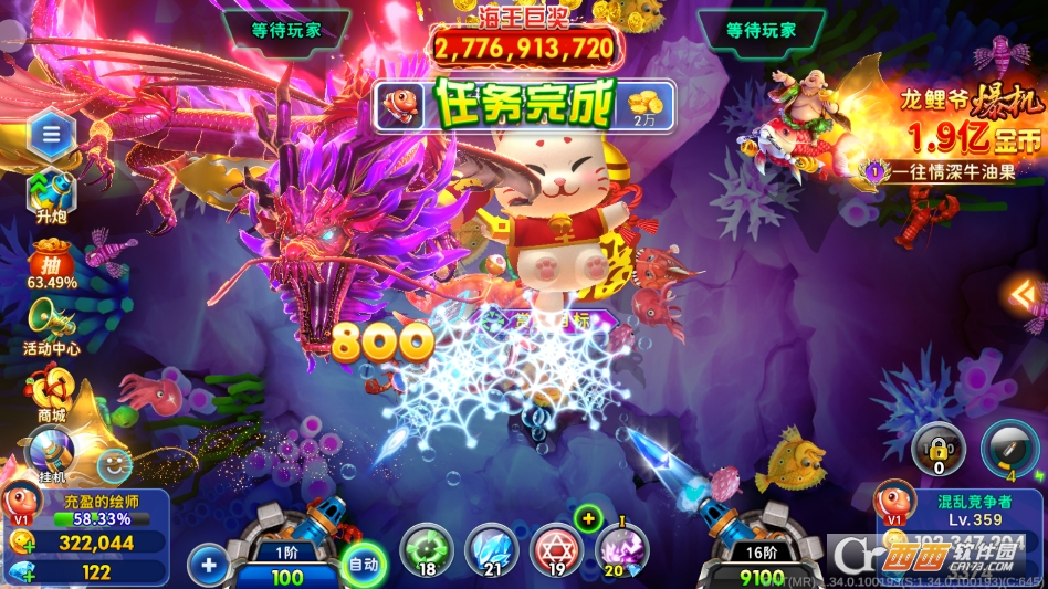2. 超高鱼币轻松获取。游戏内鱼群分值设定合理,高倍率炮台解锁后,捕获高分鱼类和BOSS就能获得海量鱼币。而且日常对战、完成任务、参与活动都能拿到额外鱼币奖励,积累速度快,不用为鱼币短缺而发愁,轻松享受捕鱼的爽感。