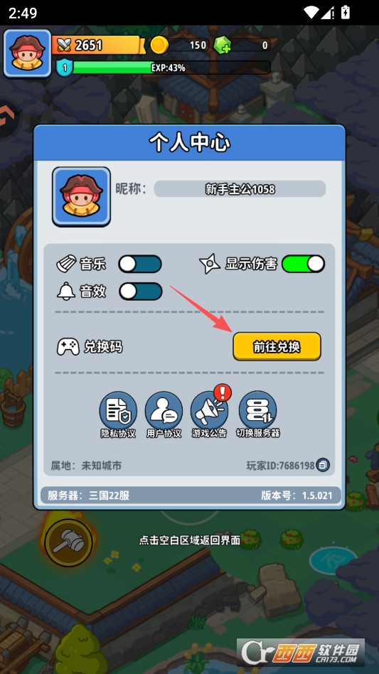 呼出个人中心菜单,点击兑换码功能