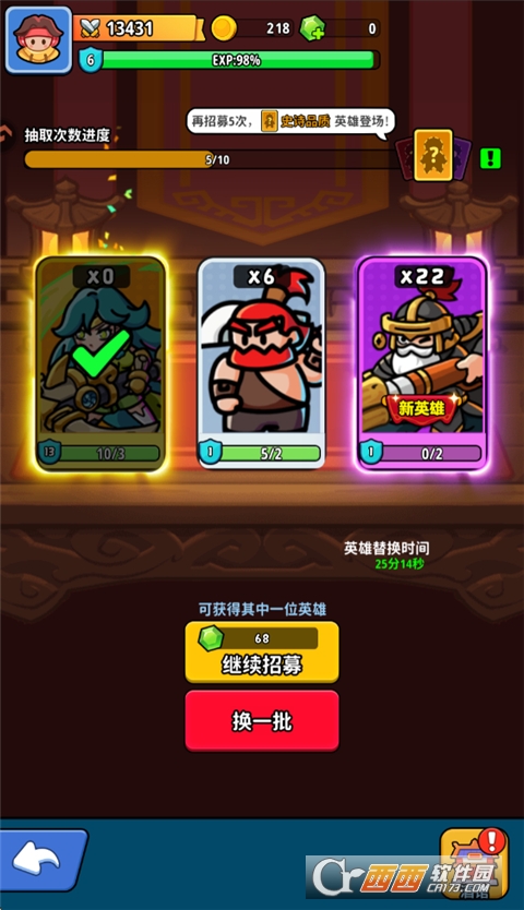 5、点击回城前往酒馆可以使用金币招募武将;