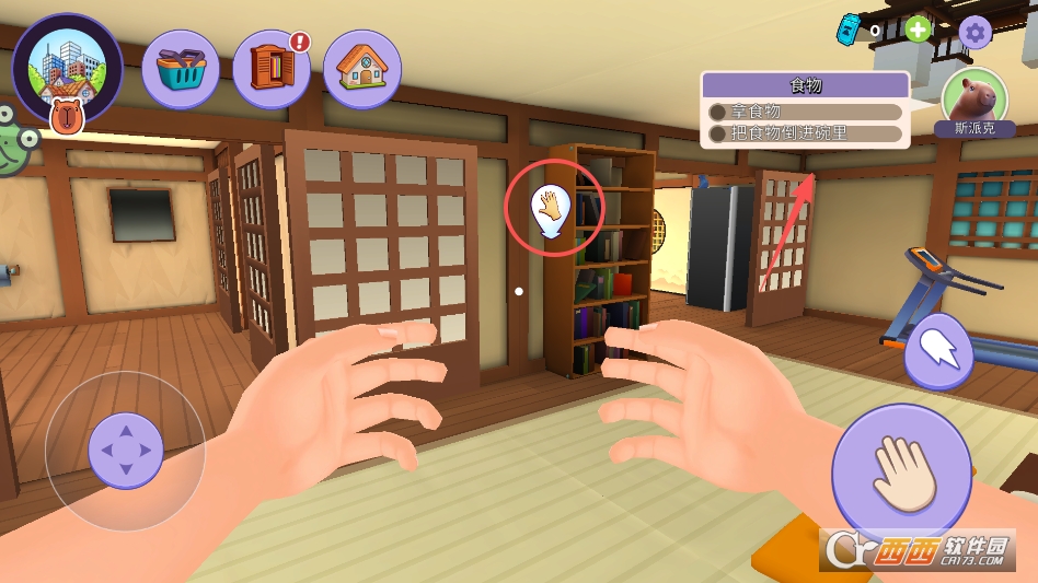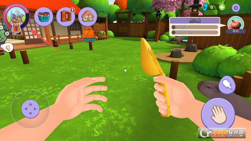 游戏采用第一人称视角打造沉浸式养成体验,让玩家仿佛真的置身于卡皮巴拉之家,近距离和这些可爱的小家伙互动。操作逻辑简单易懂,没有复杂的按键组合,所有照料动作都能通过简单的点击、拖拽完成,就算是新手也能快速上手。游戏内为卡皮巴拉准备了丰富的生活场景,除了温馨的住所,还有专属的玩耍区域、洗澡区域和觅食区域。每个场景都有独特的互动元素,比如在玩耍区可以解锁不同的玩具,在觅食区可以准备多种食物,让卡皮巴拉的生活更加丰富多彩。